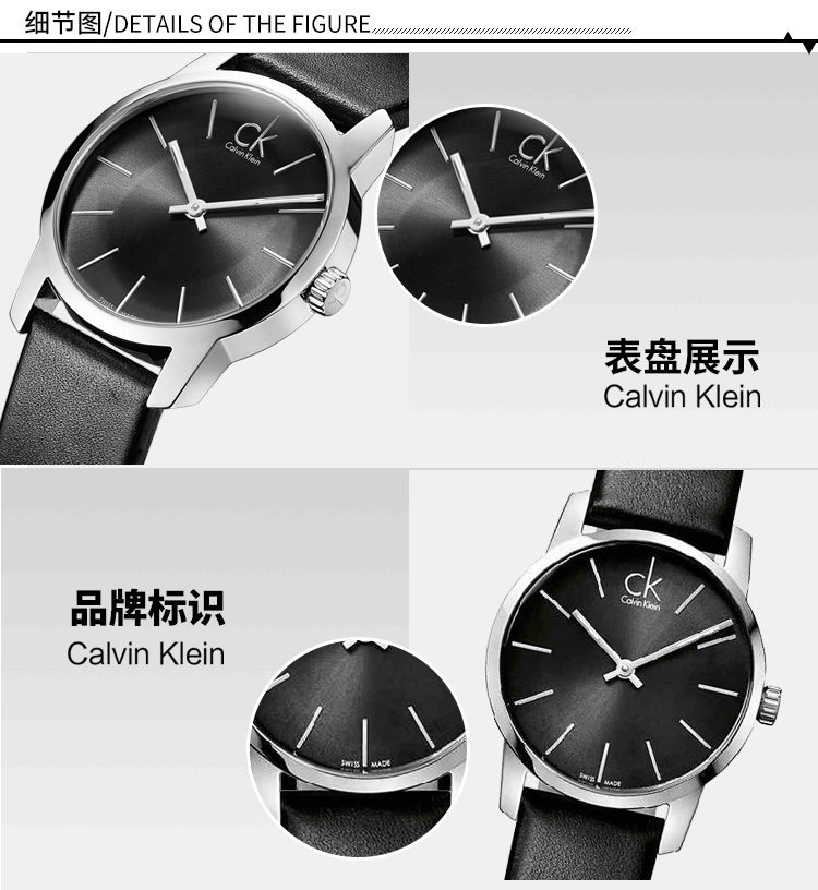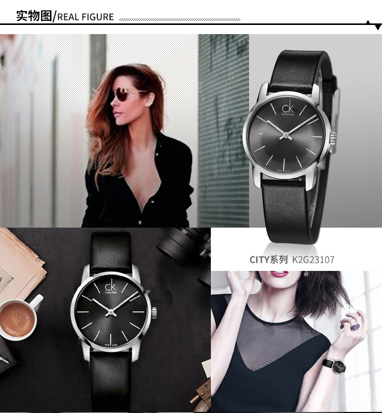 CK卡文克莱(CalvinKlein)手表CITY系列情侣表女表夜光皮带石英表K2G23107