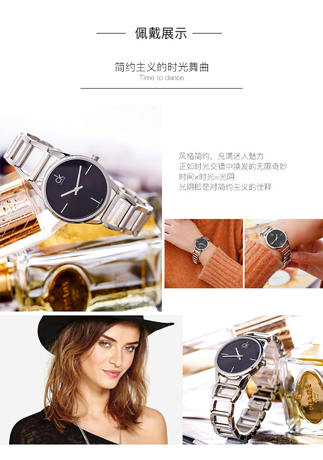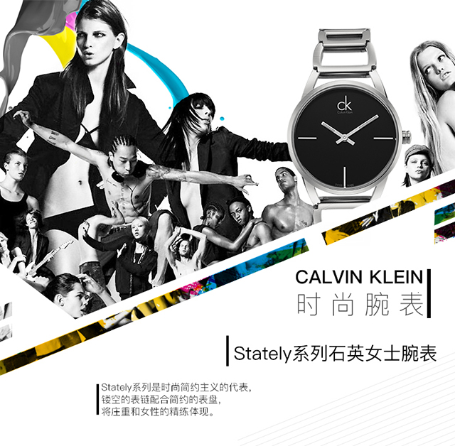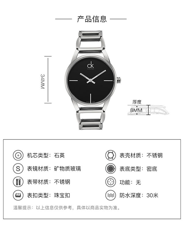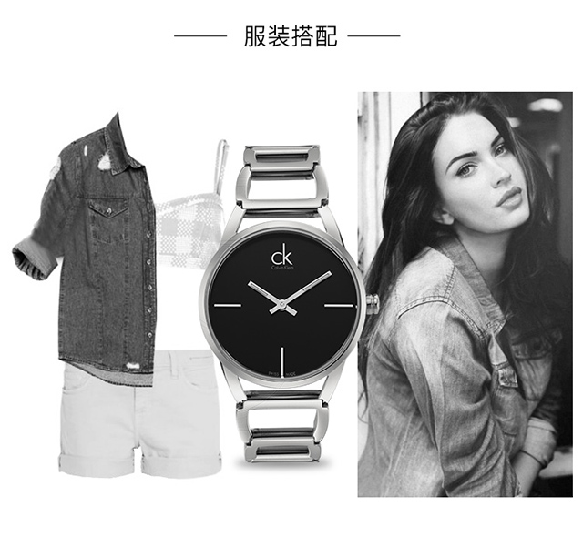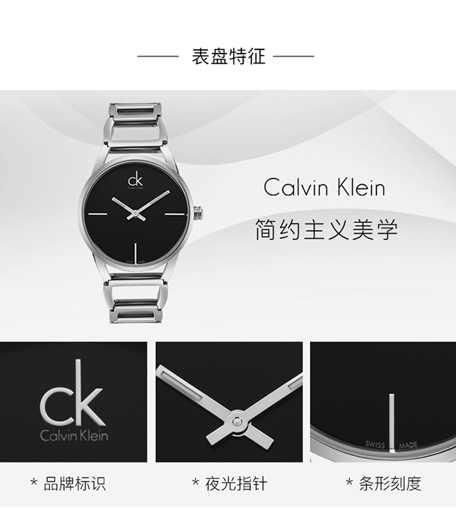 CK卡文克莱(CalvinKlein)手表STATELY系列女表简约时分针夜光黑盘钢带石英表K3G23121