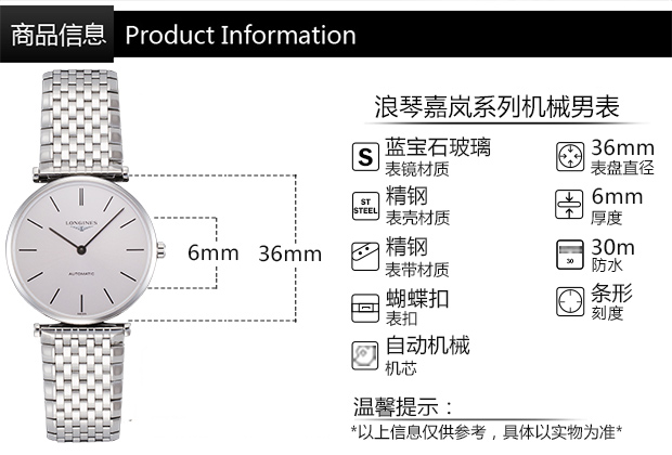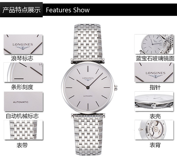 浪琴(Longines)瑞士手表 嘉岚系列机械男表L4.908.4.72.6