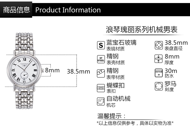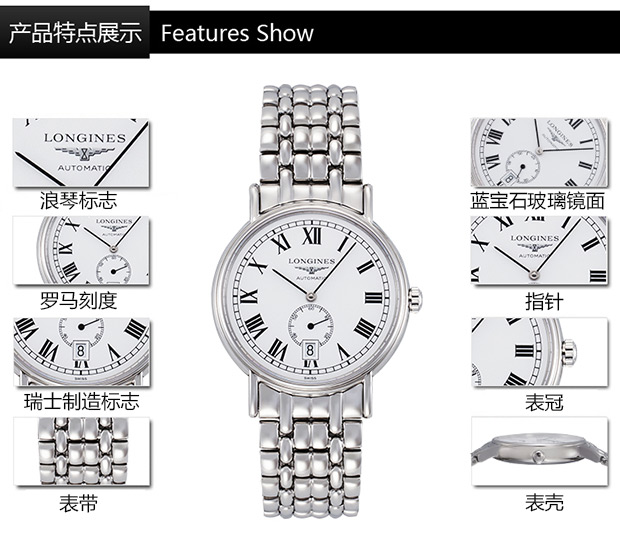 浪琴(Longines)瑞士手表 瑰丽系列机械男表L4.805.4.11.6