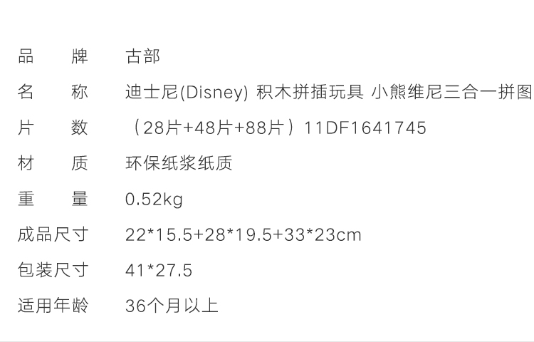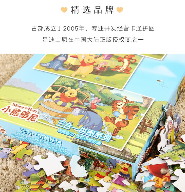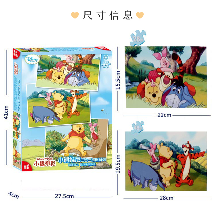 迪士尼(Disney)儿童拼图 小熊维尼三合一益智玩具(古部拼图28片+48片+88片)11DF1642283