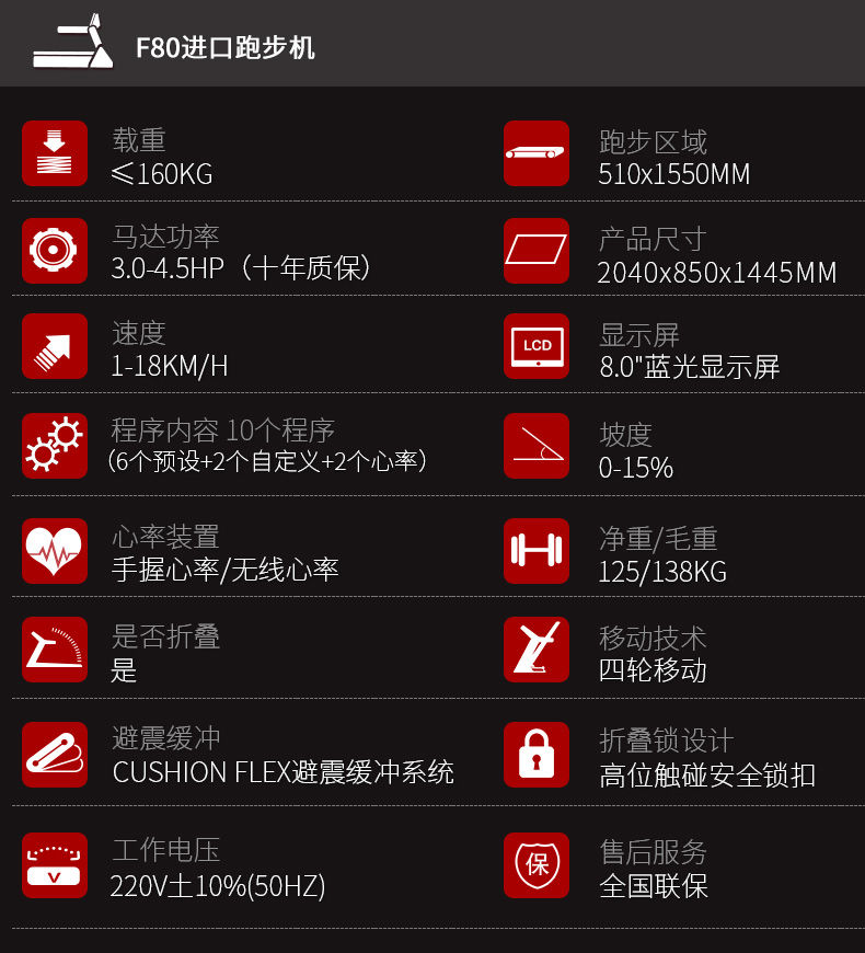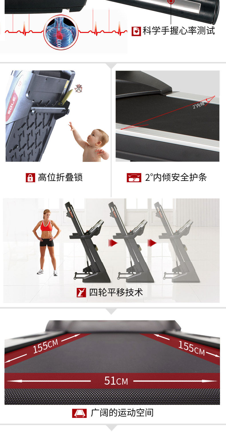 美国速尔SOLE家用跑步机F80 折叠 静音 减震跑步机 原装进口