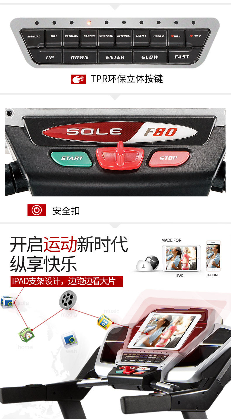 美国sole速尔F80PRO跑步机进口电动家用高端豪华静音健身房商用健身器材