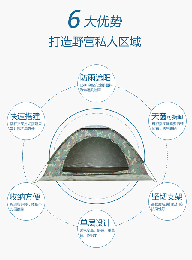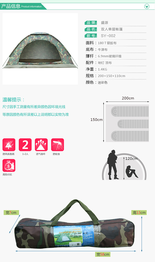 盛源2人单层迷彩帐篷 户外休闲防雨帐篷 纱门纱窗 舒适便捷