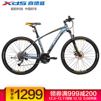 喜德盛(xds) 山地自行车英雄300运动健身27.5吋27速可锁死前叉铝合金机械碟刹灰黄色16吋