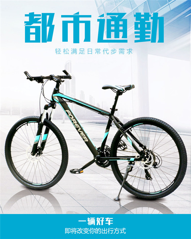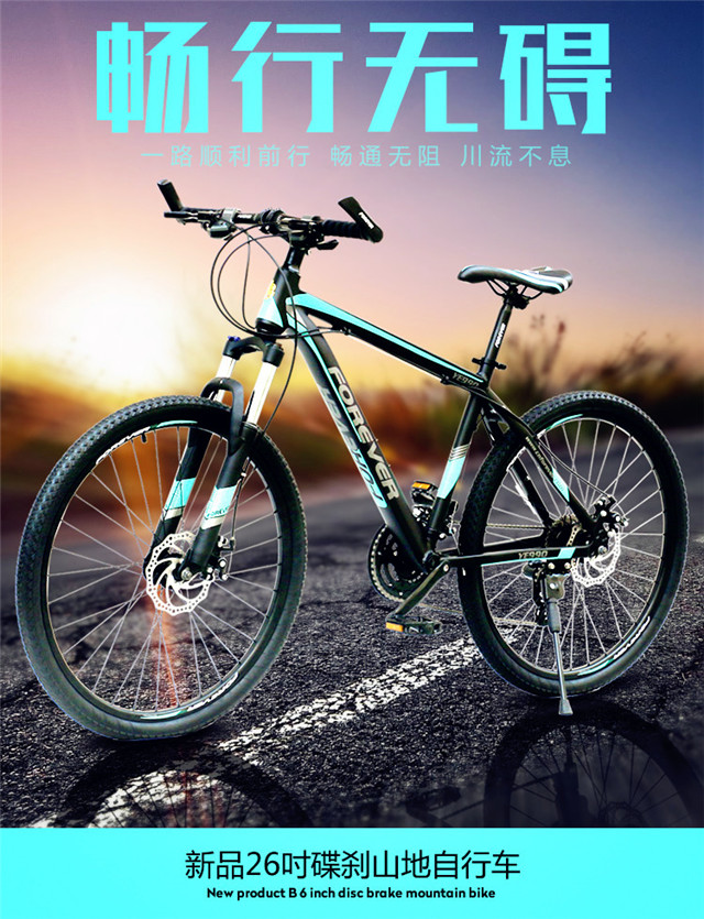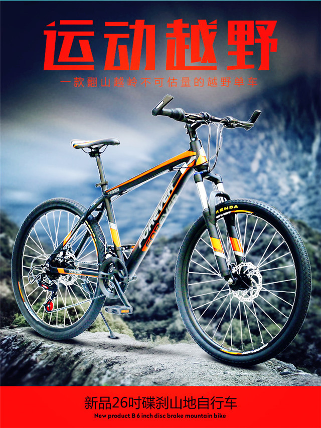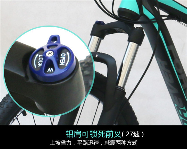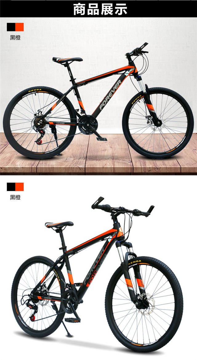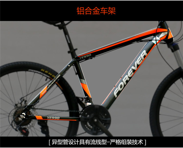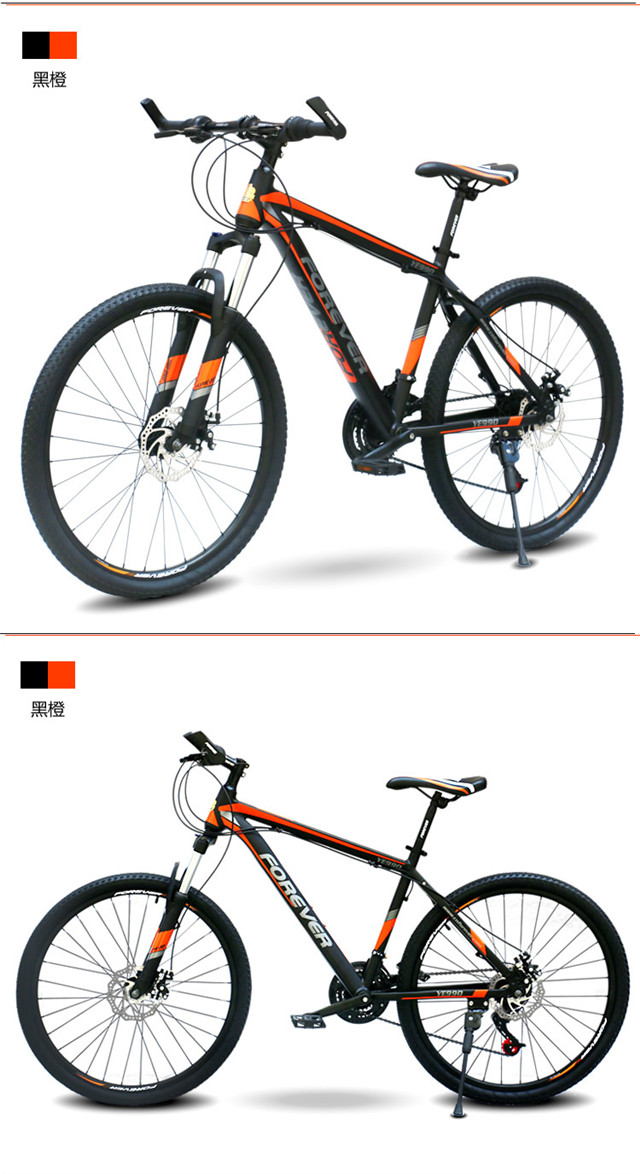 永久自行车26吋铝合金车架可锁死前叉双碟刹山地自行车YE990 27速黑橙色