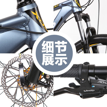 喜德盛(xds) 山地自行车英雄300运动健身27.5吋27速可锁死前叉铝合金机械碟刹灰黄色16吋
