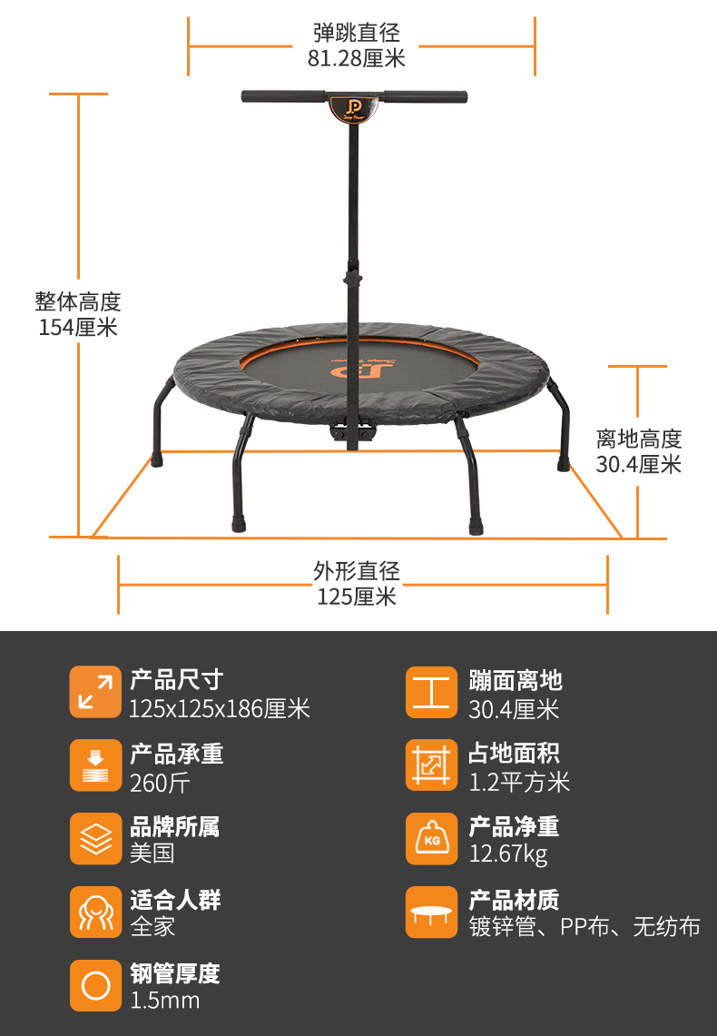 蹦堡蹦蹦床带扶手家用室内蹦床成人健身房商用跳跳床运动减肥小孩