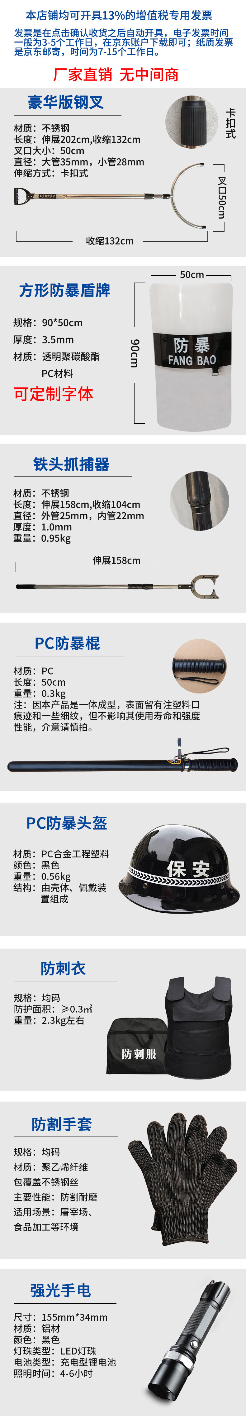 丛林狐 防暴盾牌钢叉防刺服防割手套保安头盔防暴棍武装带学校幼儿园保安防器材防爆套装(检查六件套装)