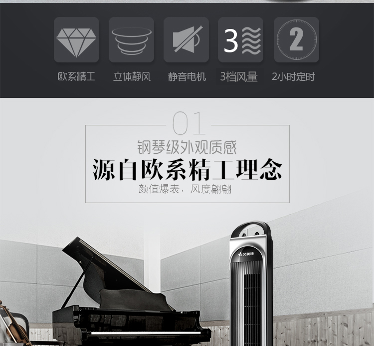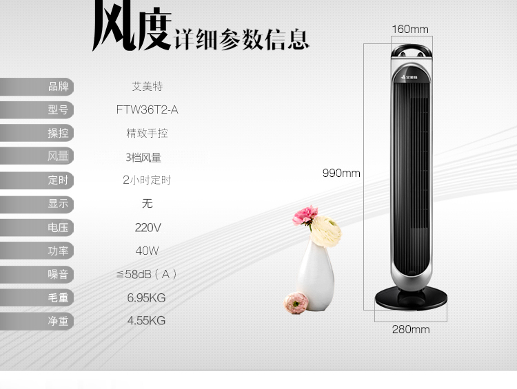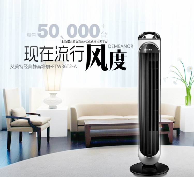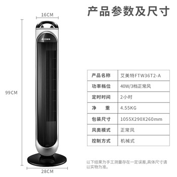 艾美特(Airmate)电风扇 落地塔扇 无叶循环 静音送风 FTW36T2-A