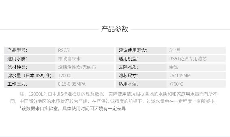 东丽比诺(TORAY) RSC51 除余氯净水花洒滤芯