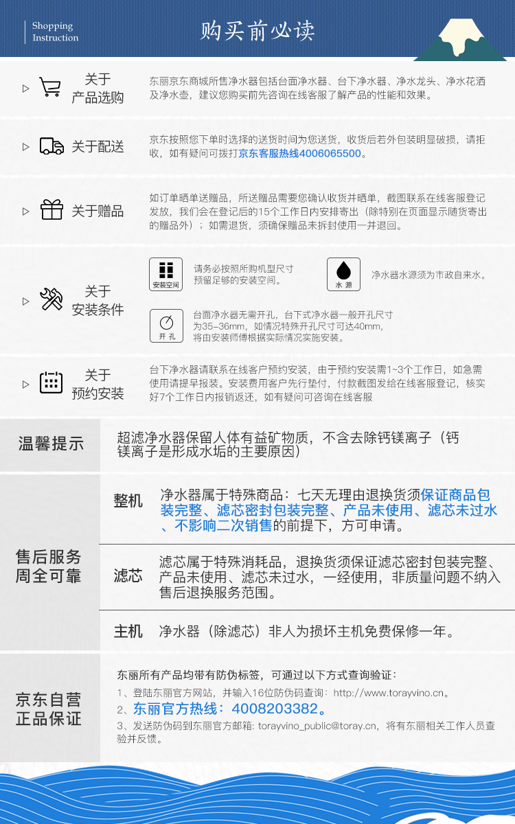 东丽比诺(TORAY)SWC-H-CH 家用净水器 台上式大流量净水器滤芯