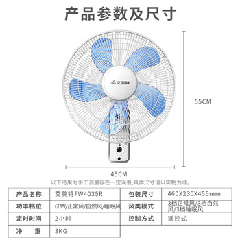 艾美特(Airmate)电风扇 壁扇 工业风扇 五叶遥控 3档风量 FW4035R