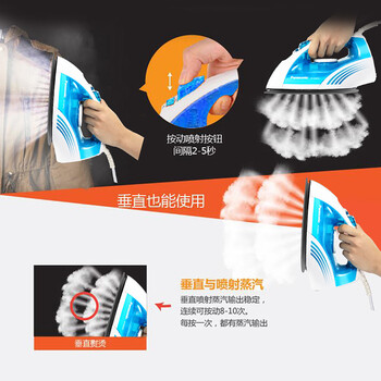 松下(Panasonic)电熨斗家用 手持蒸汽挂烫机 高温蒸汽 垂直熨烫NI-E300TS 淡蓝色