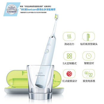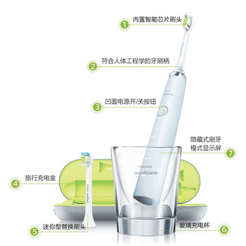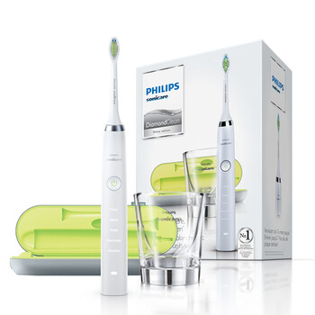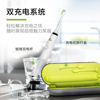飞利浦(PHILIPS) 电动牙刷 成人声波震动钻石系列(自带刷头*2+充电旅行盒+充电玻璃杯) 白钻HX9332/04