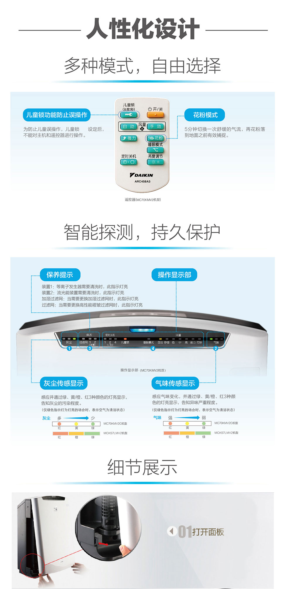 大金(DAIKIN)空气净化器家用加强型 KJ421F-N01(MC71NV2C-N) 金色