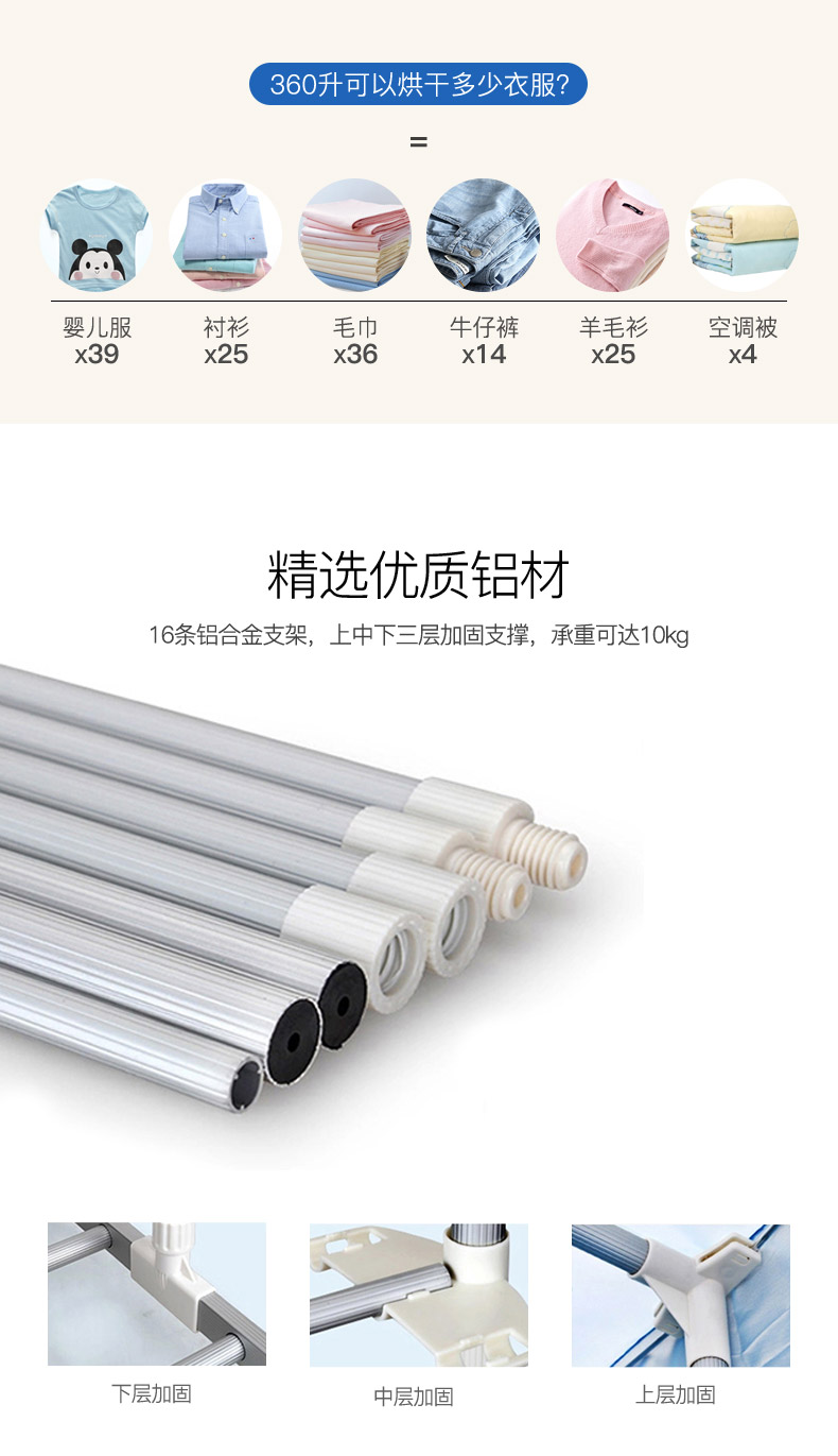 天骏小天使(TIJUMP)烘干机 干衣机家用衣服衣物烘衣机双层衣柜风干机 容量10公斤功率1200瓦 TJ-GYJ900F