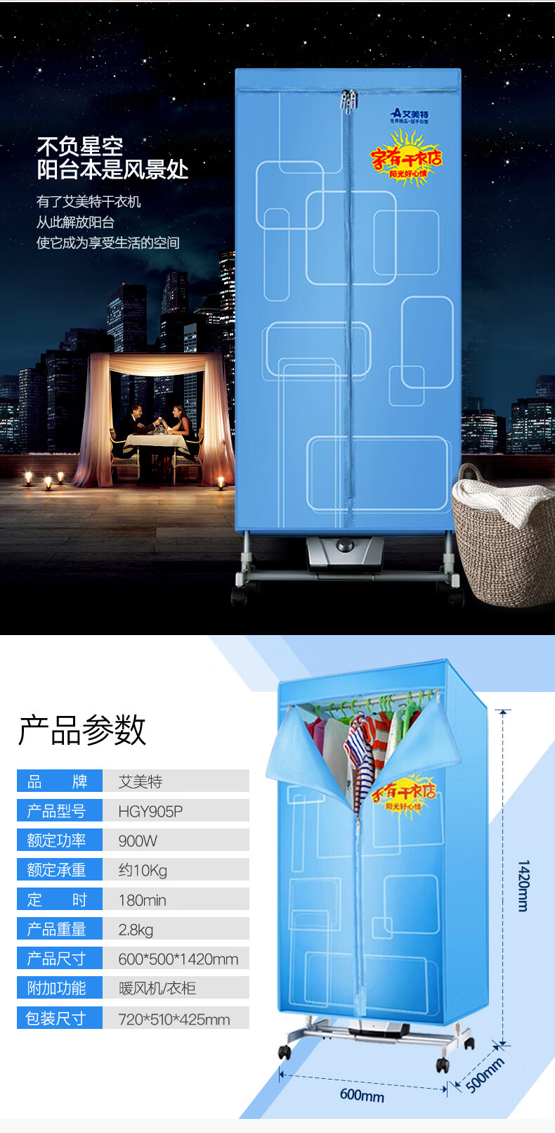 艾美特(Airmate)干衣机 婴儿 烘干机/干衣柜 家用容量10公斤 大功率 衣服护理机 HGY905P
