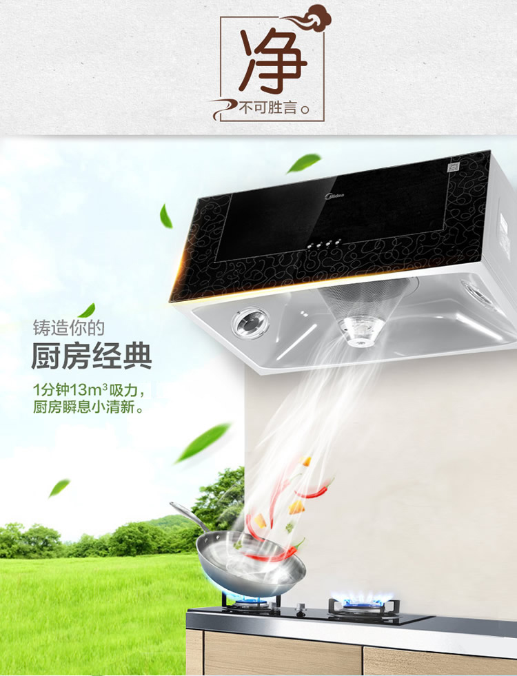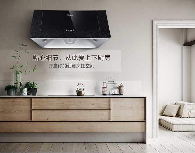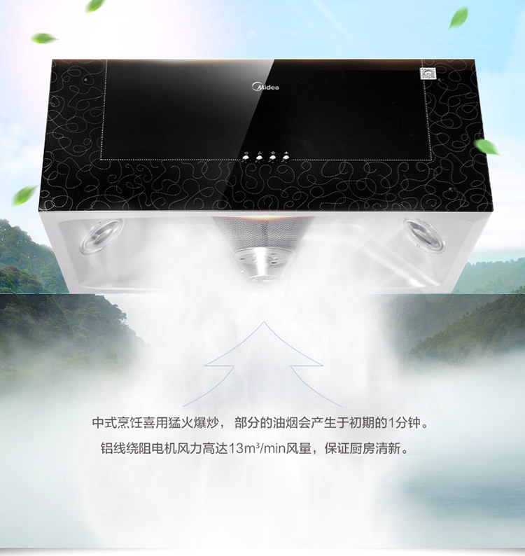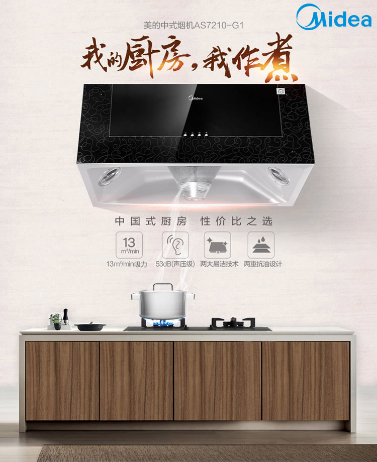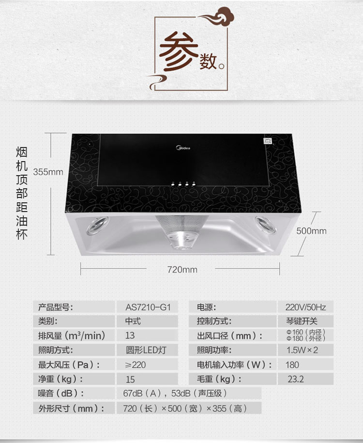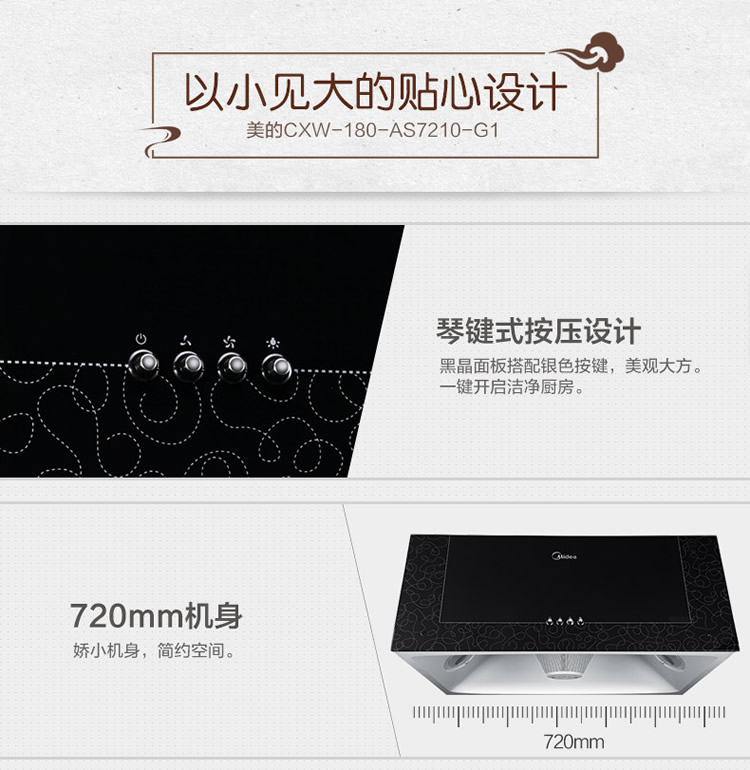美的(Midea)中式油烟机 一体成型内腔 720mm尺寸 黑晶面板 高性价比 AS7210-G1