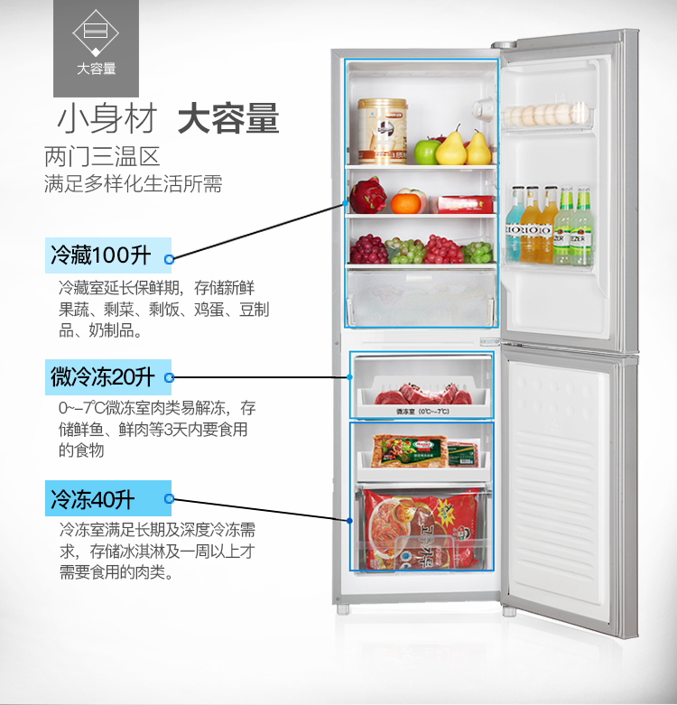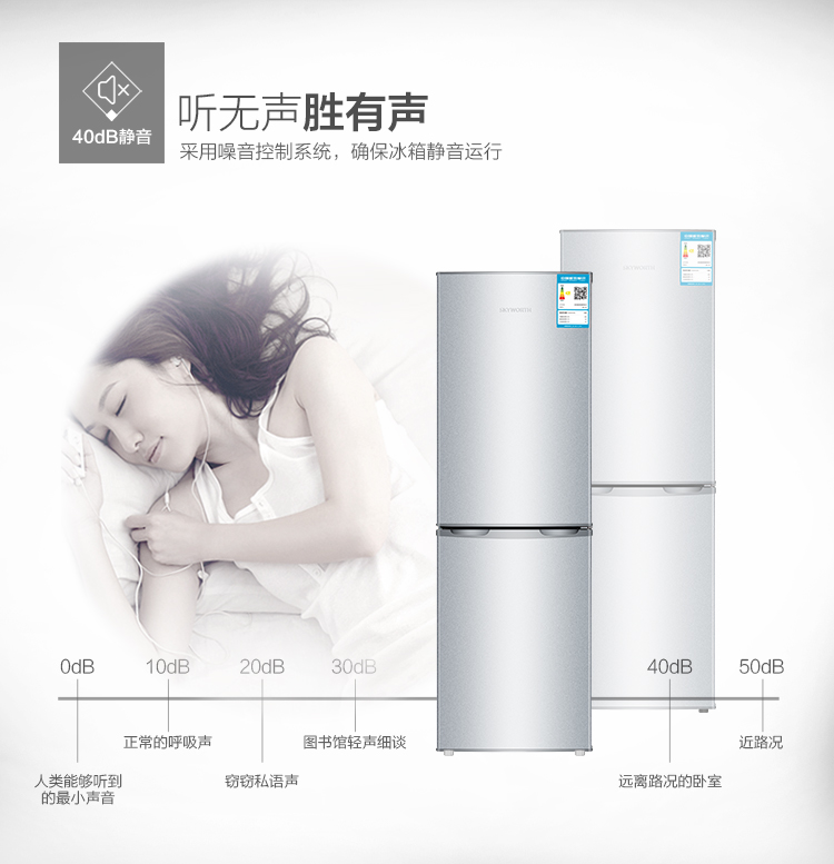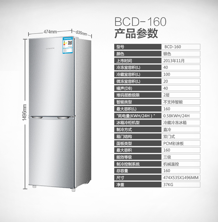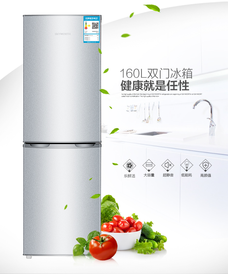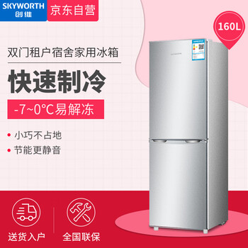 创维(SKYWORTH)160升双门冰箱 两门三温区 0~-7℃软冷冻 金属无痕面板 经济实用型冰箱(炫银)BCD-160