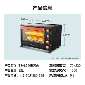 美的(Midea)T3-L326B 家用多功能电烤箱 32升 旋转烧烤 上下管独立控温
