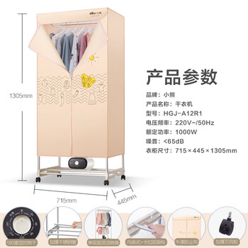 小熊(Bear)干衣机 家用烘干机 衣物静音风干机 高温除菌烘衣机 布罩双层大容量干衣柜 HGJ-A12R1(升级版)