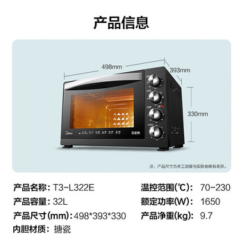 美的(Midea)T3-L322E 家用多功能电烤箱 石窑烤 专业烘焙 32升大容量 搪瓷内胆