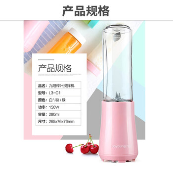 九阳(Joyoung)榨汁机迷你便携家用果汁机多功能料理机榨汁杯双杯果汁杯生日礼物送女友 L3-C1 粉色