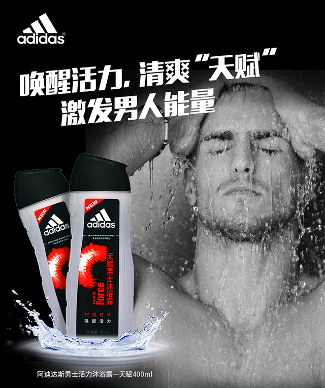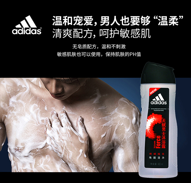 阿迪达斯(Adidas)男士天赋沐浴露400ml 持久留香控油清凉舒爽 特有木质香 不含皂质