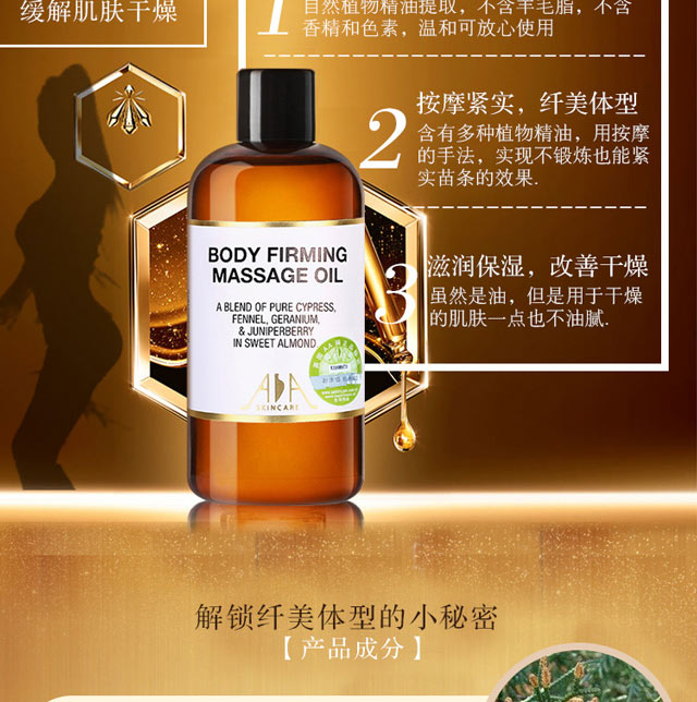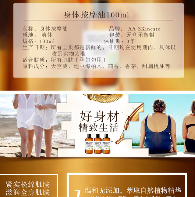 英国AA网 AA SKINCARE 身体紧致按摩油100ml(全身精油 保湿平滑肌肤 基础油 spa 护肤品 瘦身)
