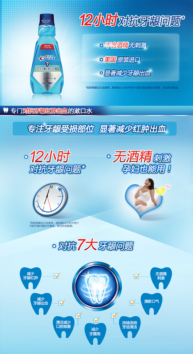 佳洁士(Crest) 健康专家 抗牙龈红肿出血漱口水500ml(长效保护牙龈 防出血 无酒精)