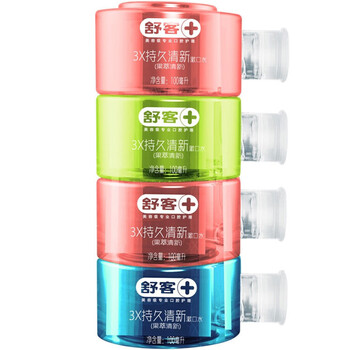 舒客 舒克持久清新漱口水 (果爽缤纷)100ml×4瓶 清新口气便携装漱口液