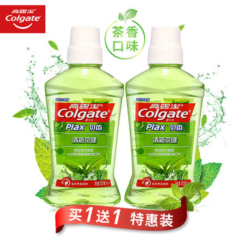 高露洁(Colgate) 贝齿清新茶健 漱口水套装 500ml×2 (天然茶香,持久清新)