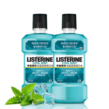 李施德林 (Listerine) 漱口水冰蓝劲爽口味500mL*2支装 (新老包装随机发货)