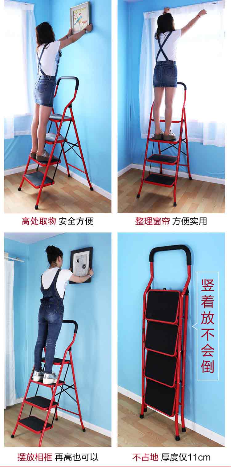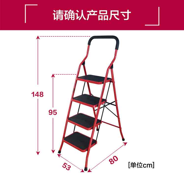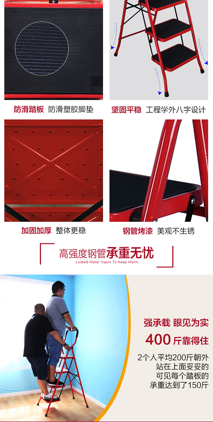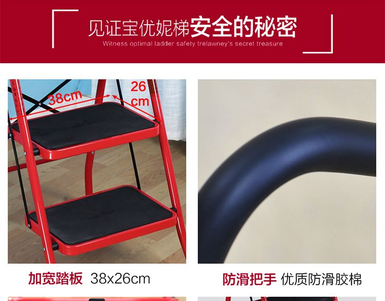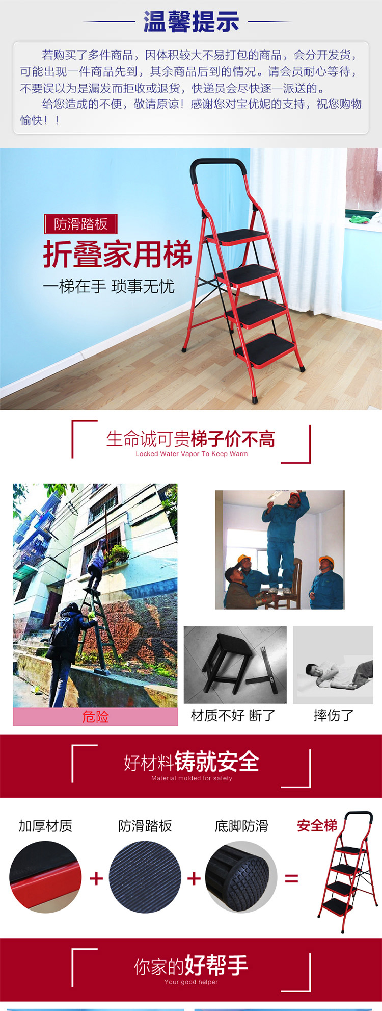 【苏宁超市】宝优妮家用梯子折叠加厚室内多功能工程梯移动楼梯三步梯人字梯 DQ-TY03A【红色】