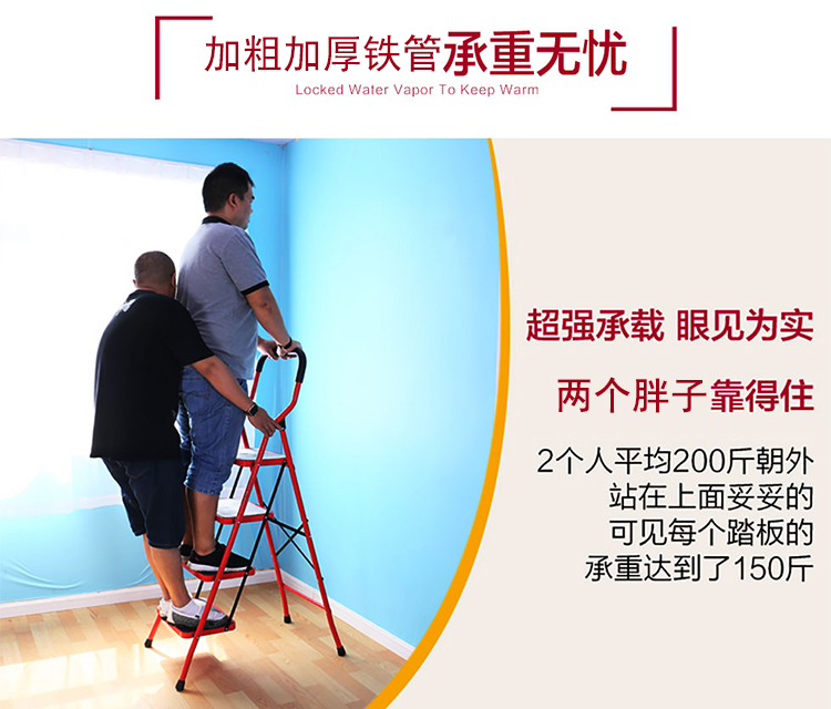 【苏宁超市】宝优妮家用梯子折叠加厚室内多功能工程梯移动楼梯三步梯人字梯 DQ-TY03A【红色】
