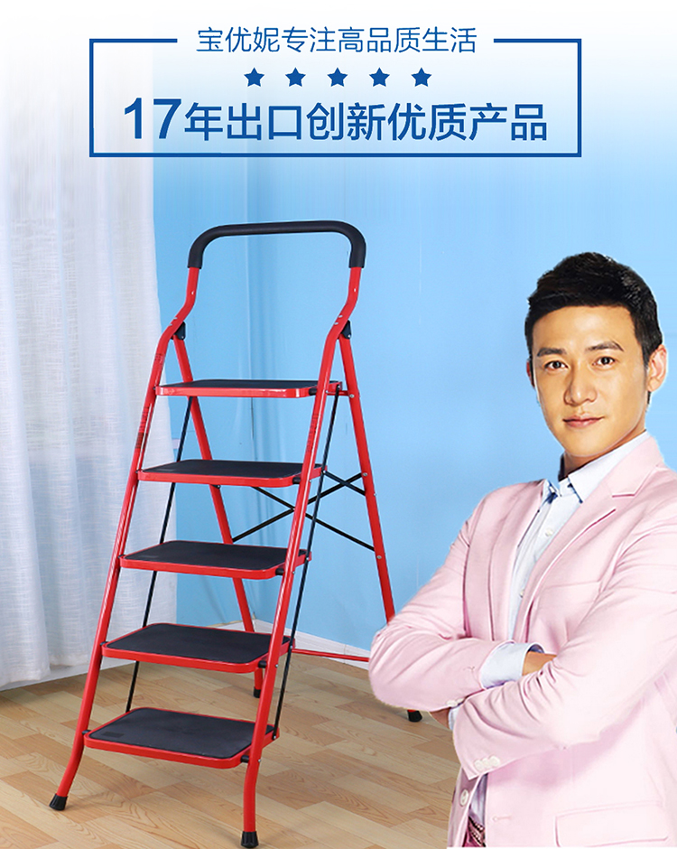 【苏宁超市】宝优妮梯子家用折叠加厚室内多功能工程梯家庭移动梯防滑梯五步梯人字梯 DQTY05-A【红色】