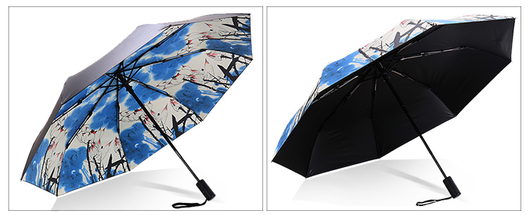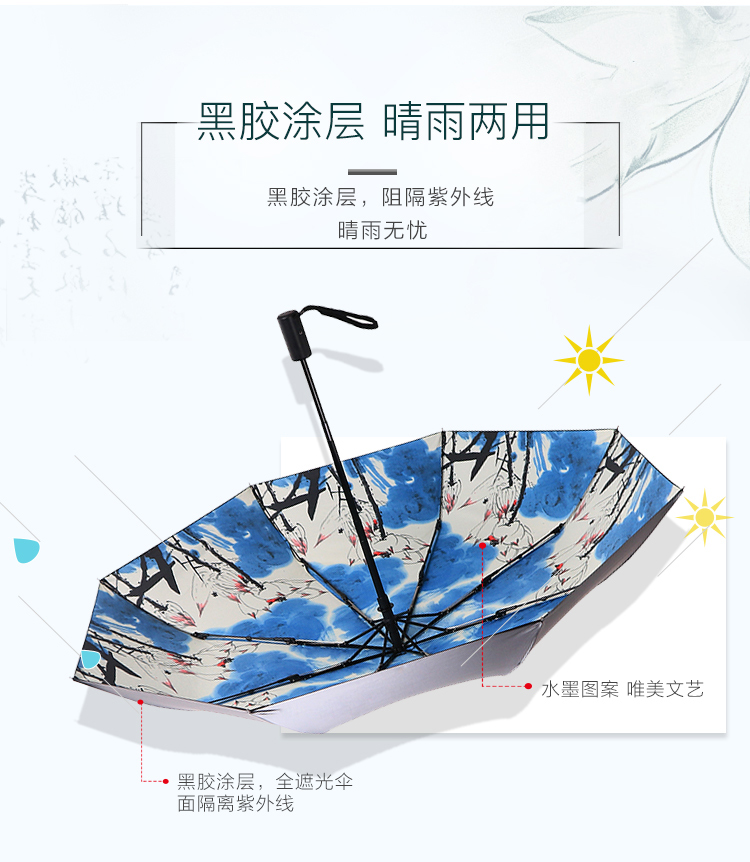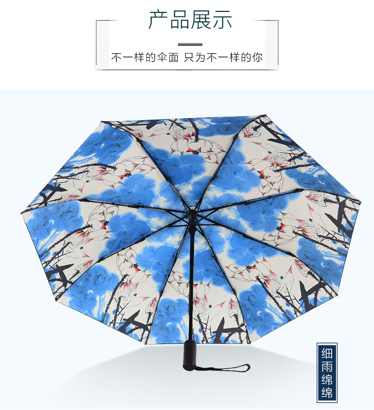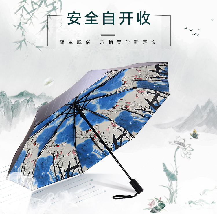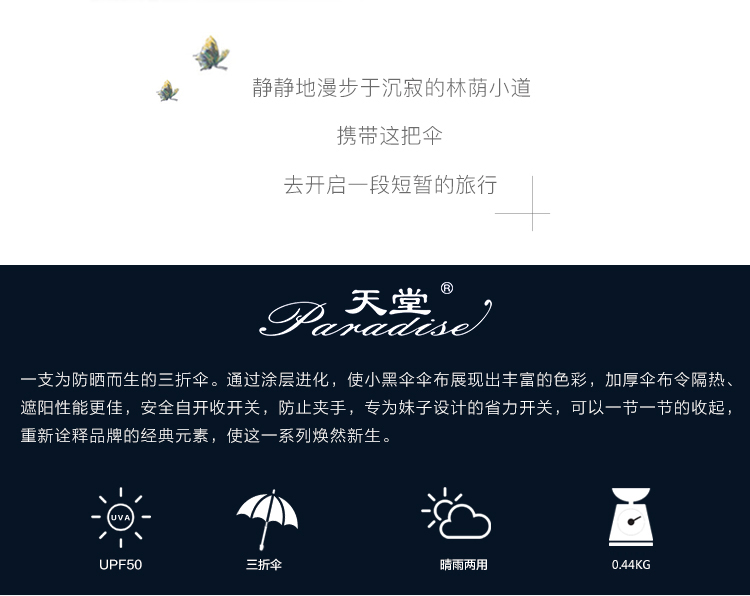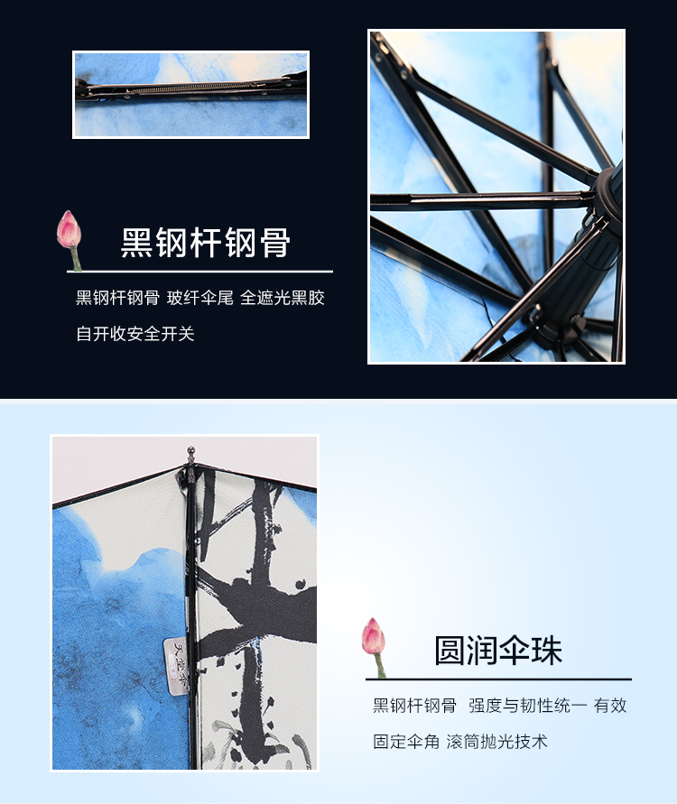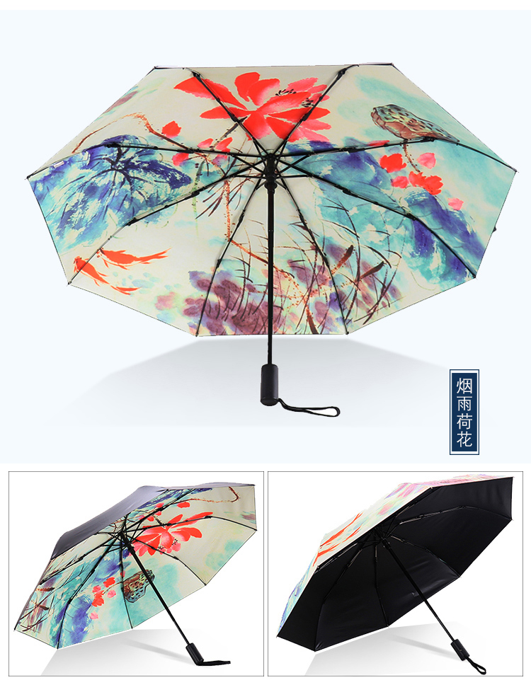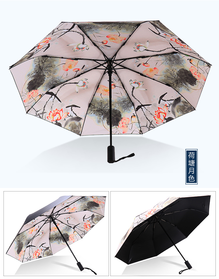 天堂伞安全自开收全遮光黑胶转印三折晴雨伞 30491ELCJ 荷塘月色外花