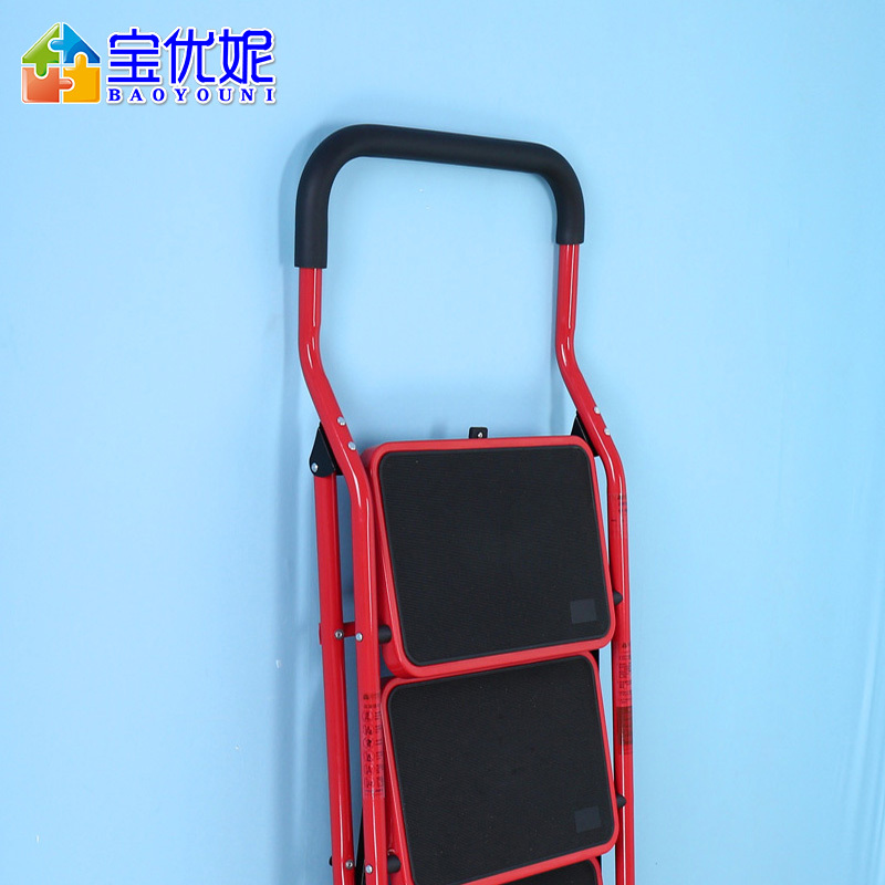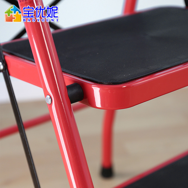 【苏宁超市】宝优妮家用梯子折叠加厚室内多功能工程梯移动楼梯三步梯人字梯 DQ-TY03A【红色】