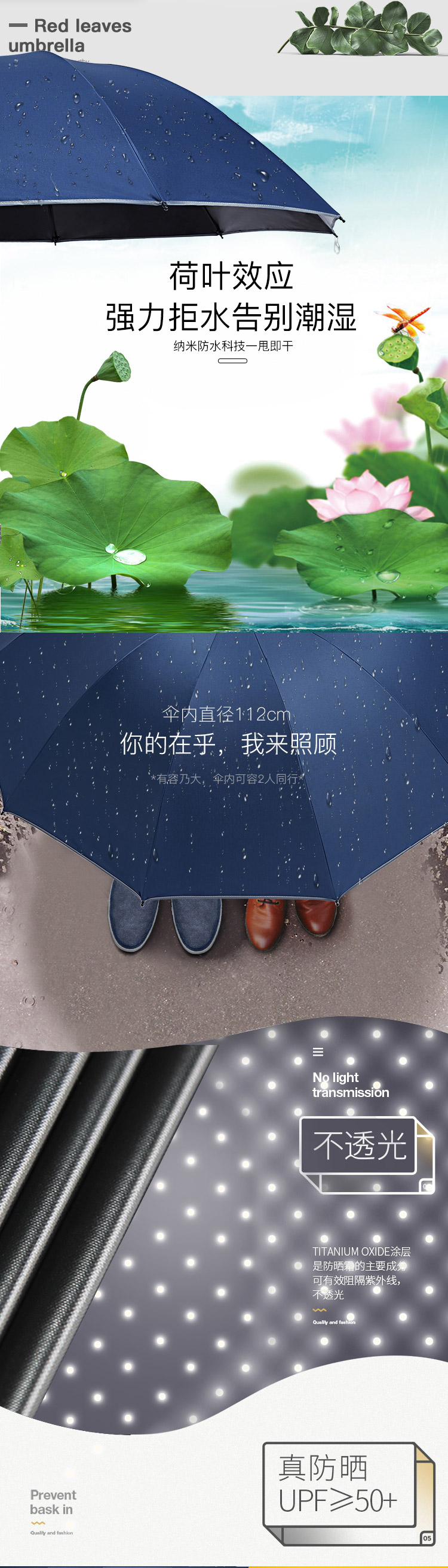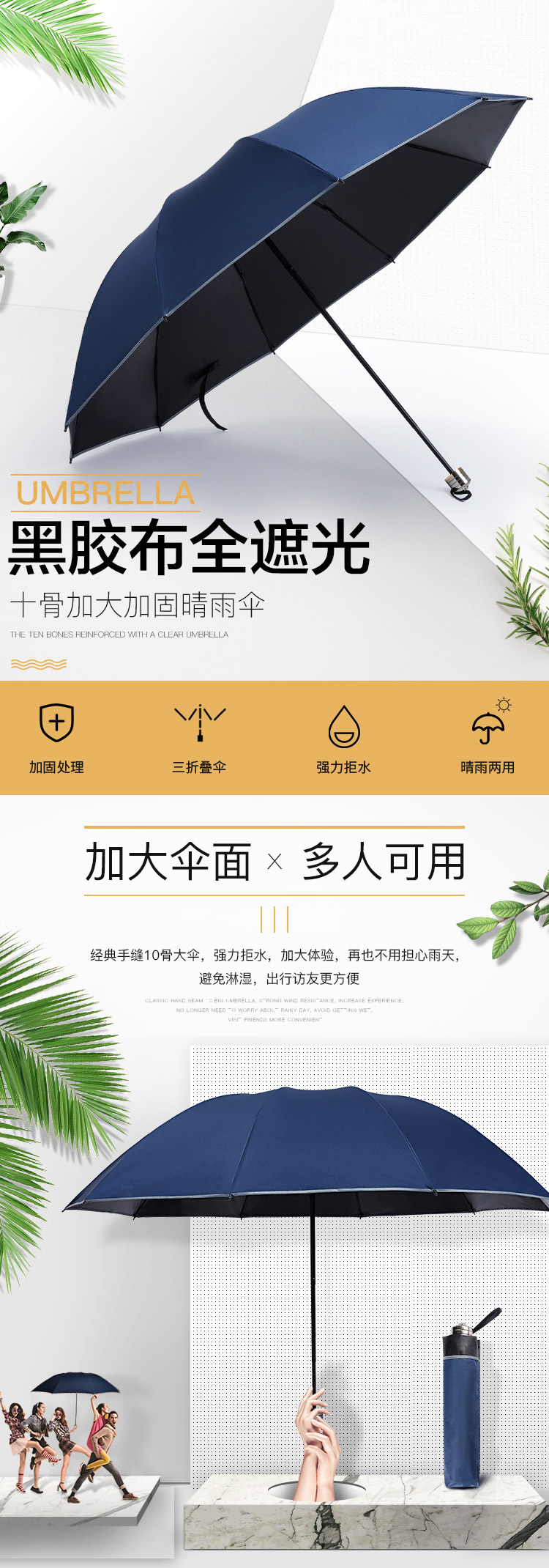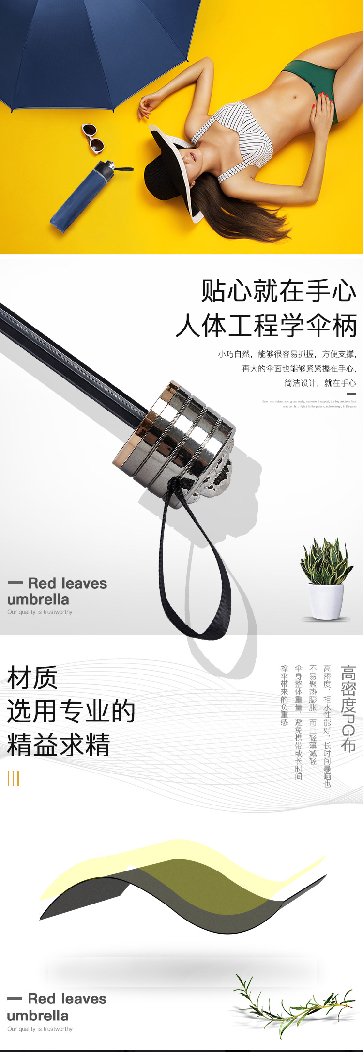 红叶雨伞 黑胶加大加固三折雨伞晴雨伞强力拒水一甩干商务伞 藏青色JD9902 蓝色